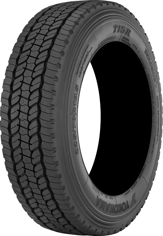 The Yokohama 115R is a commercial tire that's designed for use on all positions of semi-trucks and buses in regional and pickup and delivery applications. A special rubber compound and a block tread pattern dissipate heat to fend off uneven wear and boost fuel efficiency, and the 115R's sidewall protector ribs guard the tire against cuts, chips, and abrasions for a longer tread life. Additionally, the 115R features wide lateral grooves that promote self-cleaning for consistent traction in wet and snowy conditions, and serpentine circumferential grooves that allow for strong performance, even as the tire wears down.